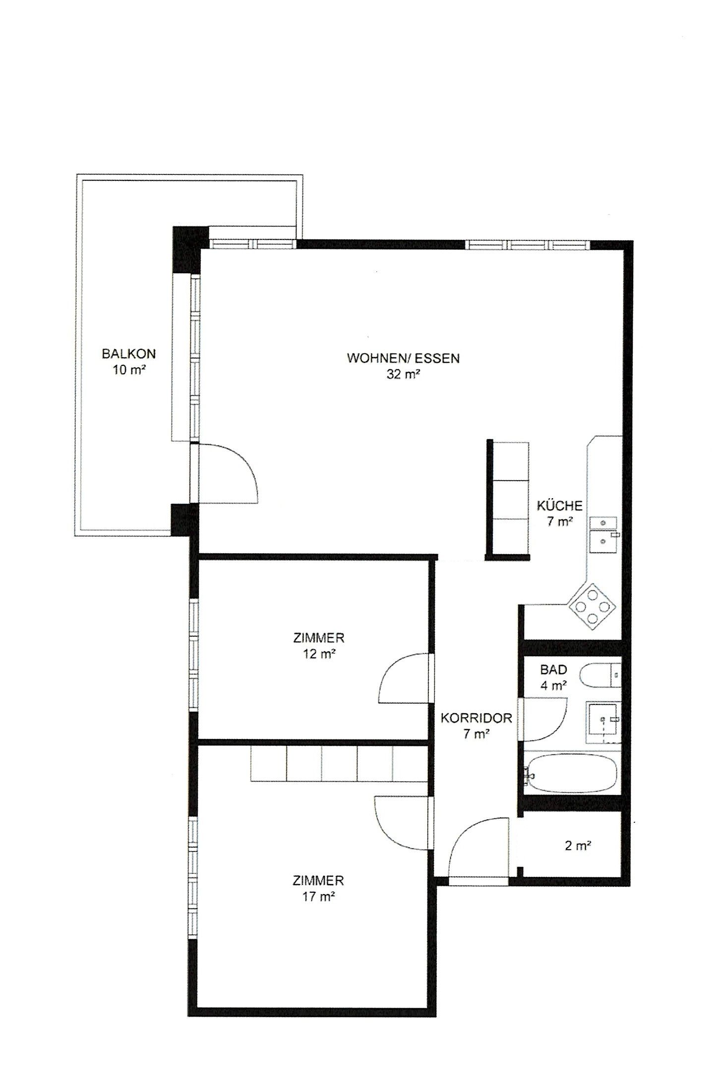 Stylisch renovierte 3,5 Zimmer Wohnung mit eleganter Küche welche mit Marmor, Neuer Spülmaschine, Neuem Kühlschrank, Induktion-Herd, Mikrowelle und Ofen ausgestattet ist, 1 Bad mit grosser Bodenebener Dusche & WC & Lavabo, 1 Stylisches Gäste WC, 2 Schlafzimmer, 1 heimeliges Wohnzimmer mit direktem Zugang zum grossen Balkon, welcher mit den selben Steinplatten wie die Wohnung ausgestattet ist.